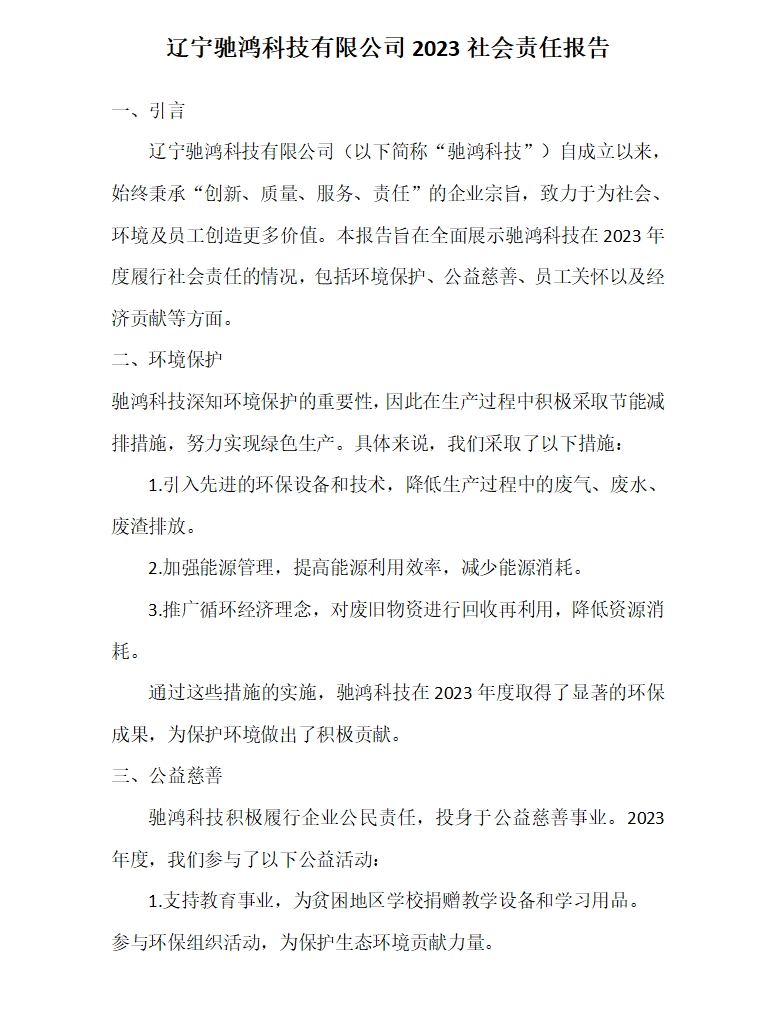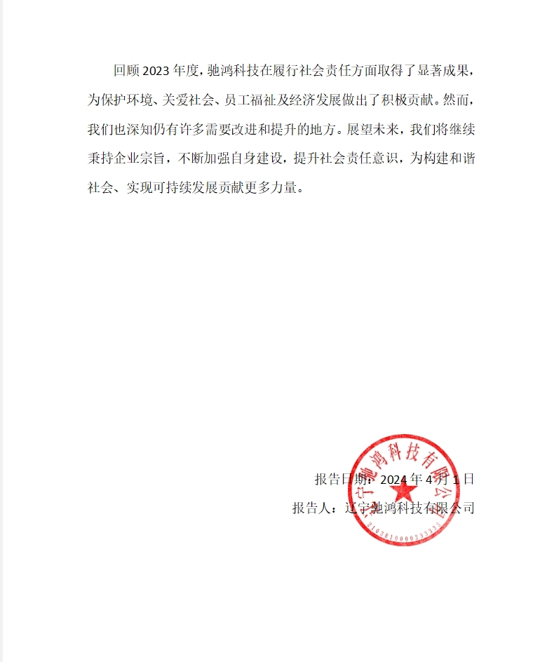 遼寧馳鴻科技有限公司 2023 社會(huì )責任報告